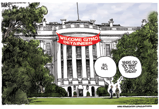 Now... I know that in recent weeks Barack Obama has gotten flack from the G.O.P. (and I'm one of them) for signing the order to close down the Guantanamo Bay prison within 1 year; and there have been cases of released Guantanamo Bay detainees/prisoners returning to terror groups after their release. Plus the problem of where to put them all. And Obama is getting flack for this.