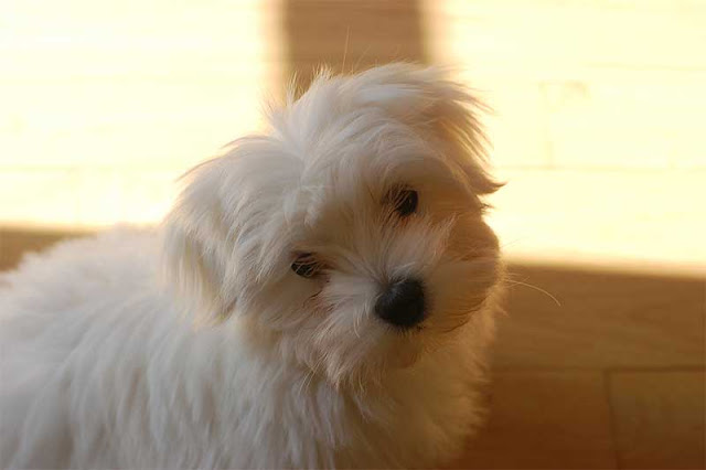 Es blanco, pequeño y con mucho pelo, parecido al de esta foto: http://3.bp.blogspot.com/-EBJmiQNVyaA/T0GxBWC-2NI/...