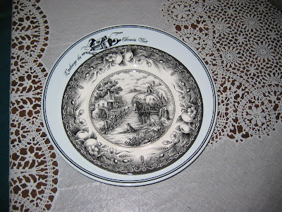I have some very old dishes that were my great grandmother's. I believe that they are china, however, there is no mark on the back of them. The print on the plates in the center is of a horse pulling a hay wagon, with an amish looking man holding the reins and a whip. There is a red farmhouse in the background and roosters and flowers that border the plate w/ a red line around the entire plate. The print looks very primitive. I appreciate any help that you can give. I have looked at internet links but I cannot find what the pattern is called. Thanks for any help that you can give me!