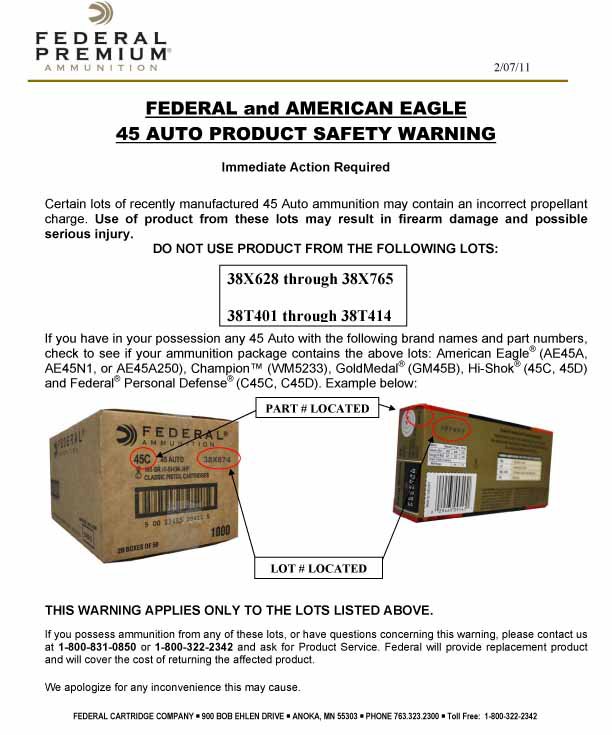 Edit: Sure enough, I have some recalled Federal Champion 230 gr. FMJ. I've fired at least 300 rounds of the WM5233 sku and these lot #... I'm down to the last box of it.